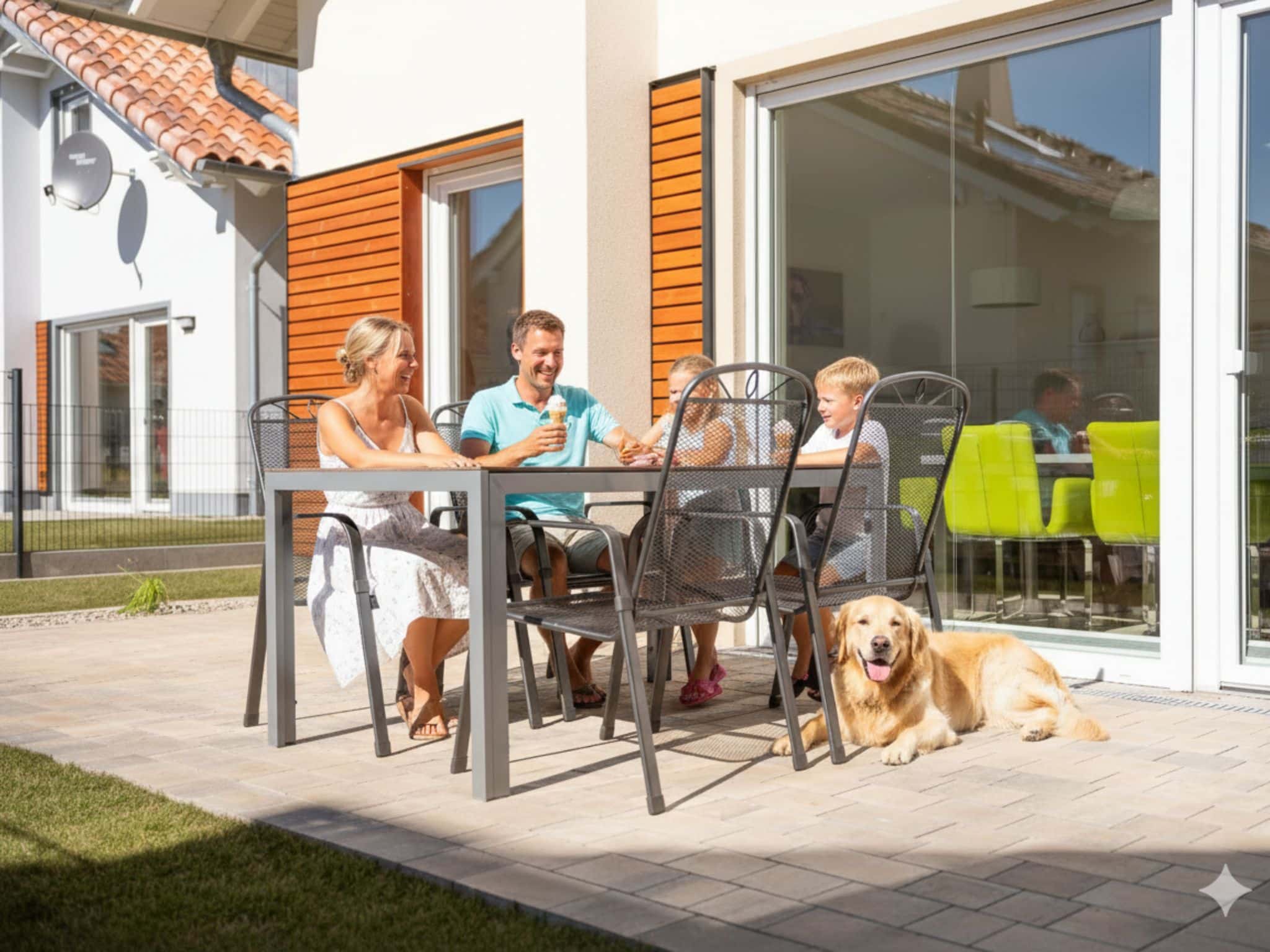 - Süd-Terrasse mit Esstisch, Sonnenschirm und Grill
