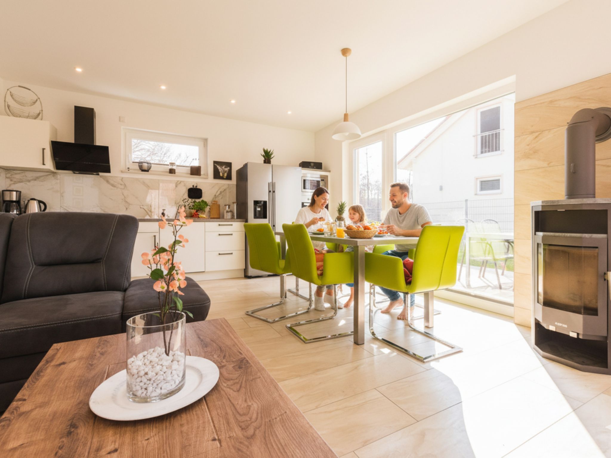 - Kaminofen im offenen Wohn- Essbereich