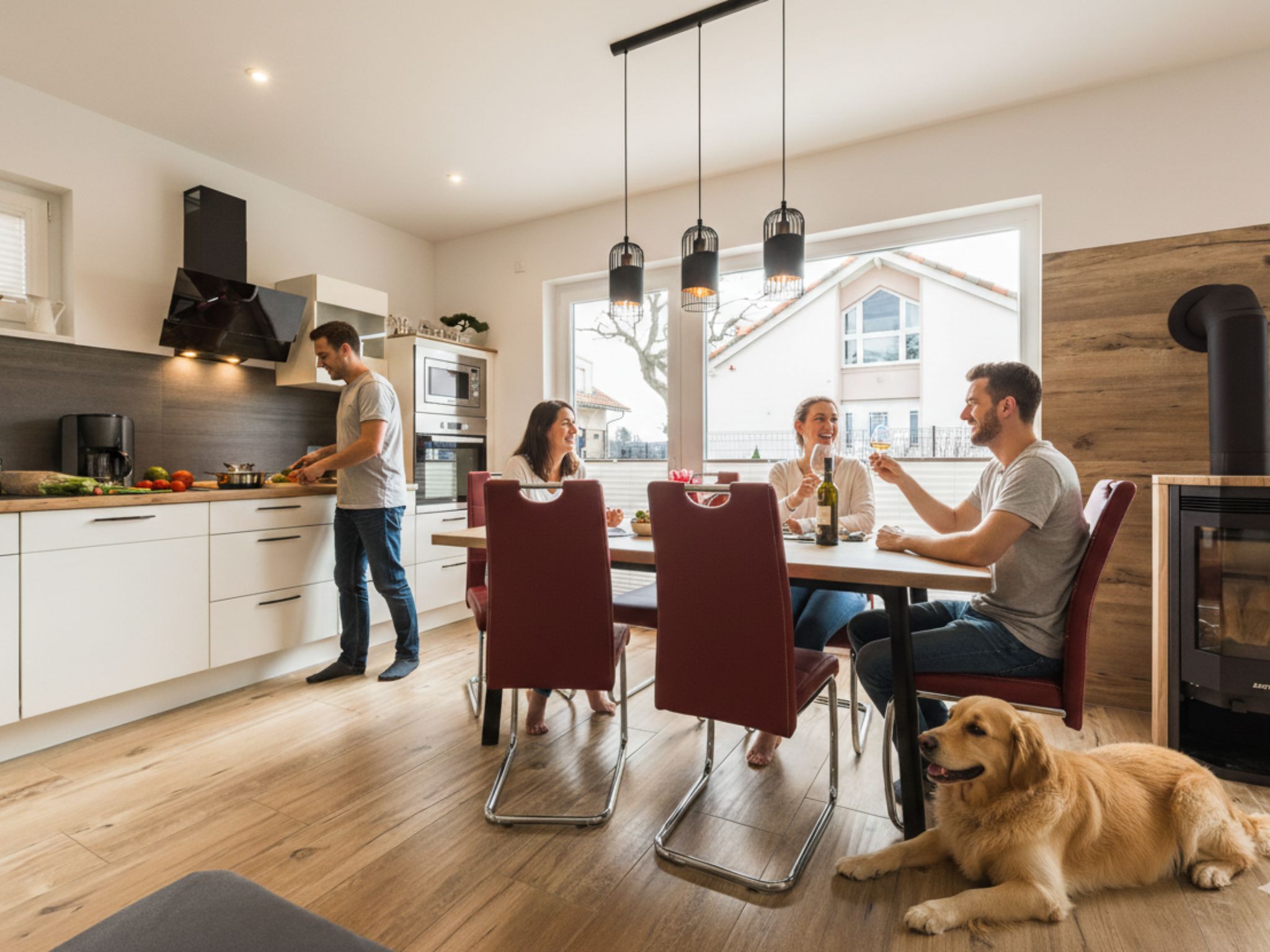 - Kaminofen im offenen Wohn- und Essbereich