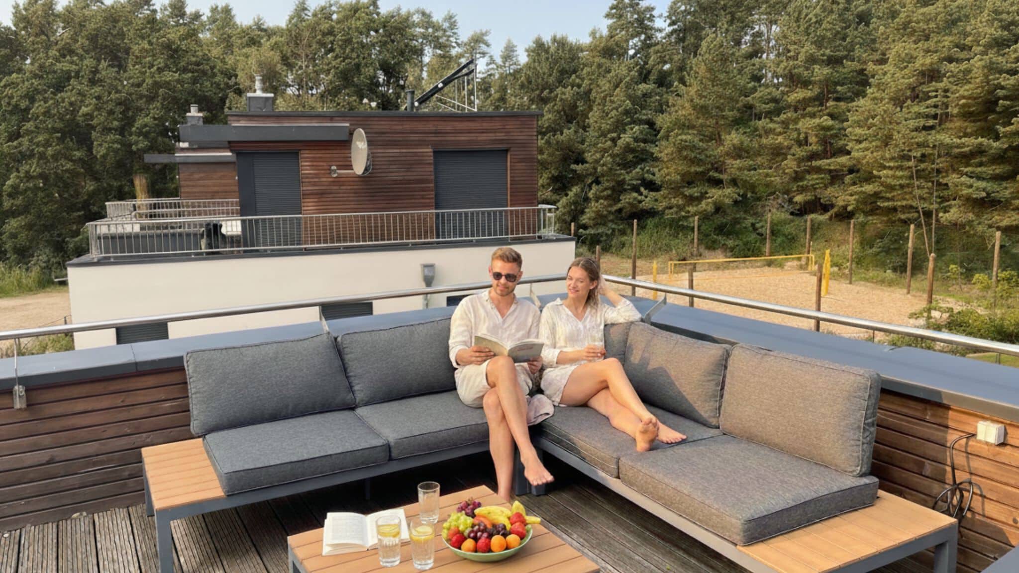 Nach dem Saunagang genießen Sie den fantastischen Blick von der Dachterrasse auf den Altdorfer See