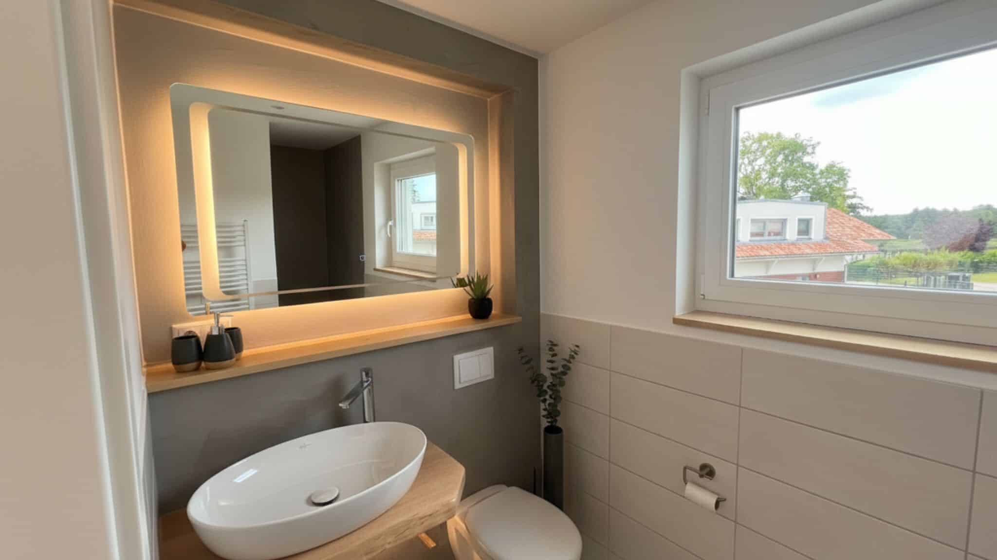 Funktionalität und Ästhetik bestimmen den Ton in allen Bädern. Ein wahrlicher Genuss ist das Entspannen auf der großen Dachterrasse mit freiem Blick über den Altdorfer See.