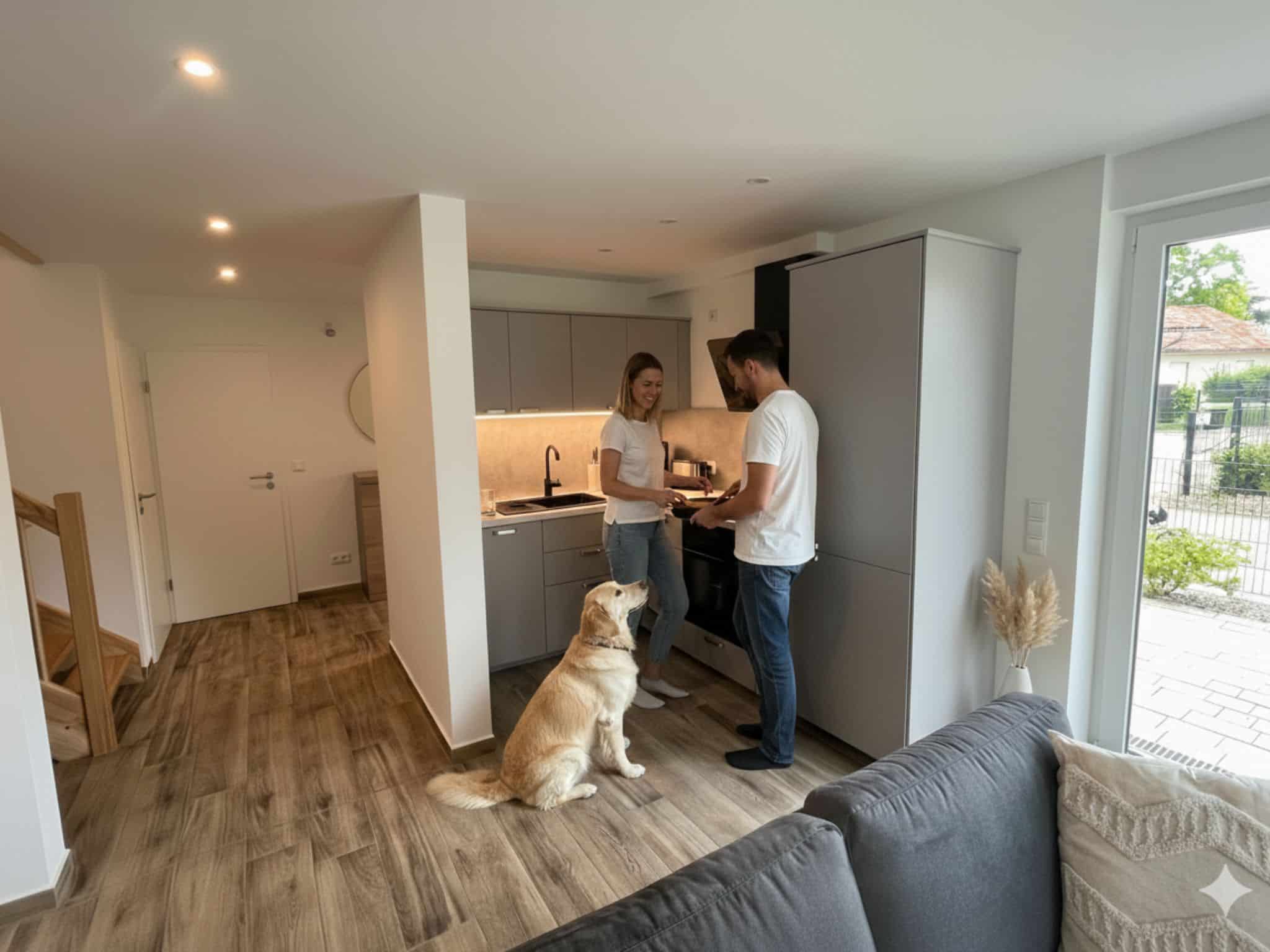 - Fußbodenheizung in allen Wohnräumen des Erdgeschosses
